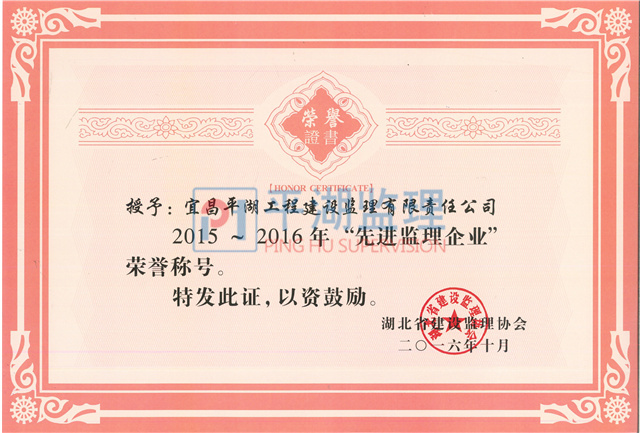 | 2015~2016年度湖北省先進(jìn)監(jiān)理企業(yè) |