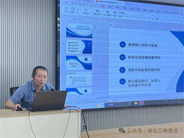 本次會(huì)議,管控部鮑宇飛詳細(xì)通報(bào)了各項(xiàng)目考核結(jié)果,通過(guò)數(shù)據(jù)對(duì)比和案例分析,既指出了當(dāng)前存在的典型問(wèn)題,也對(duì)項(xiàng)目部下步重點(diǎn)提出了管理建議。項(xiàng)目部總監(jiān)熊飛分享《監(jiān)理安全責(zé)任案例分析》,系統(tǒng)講解了新舊《建筑法》條款對(duì)比,監(jiān)理需落實(shí)“方案先行”“旁站監(jiān)督”“隱患閉壞”等規(guī)范要求。項(xiàng)目總監(jiān)張輝分享《高速作業(yè)升降工作平臺(tái)安全管控與實(shí)操要點(diǎn)》,安全風(fēng)險(xiǎn)如影隨形,隱患潛藏細(xì)微之中,時(shí)刻繃緊安全之弦,細(xì)心守護(hù)安全底線。項(xiàng)目機(jī)電安裝專(zhuān)家鄒建新圍繞《房建機(jī)電安裝監(jiān)理質(zhì)量控制》主題展開(kāi)分享,內(nèi)容聚焦房建機(jī)電與消防安裝兩大板塊的監(jiān)理質(zhì)量控制要點(diǎn)。結(jié)合其多年現(xiàn)場(chǎng)監(jiān)理實(shí)踐經(jīng)驗(yàn),以保利·山海大觀、沃東應(yīng)急救援項(xiàng)目等實(shí)際案例為切入點(diǎn),通過(guò)闡述全流程監(jiān)督管理的具體措施與執(zhí)行標(biāo)準(zhǔn),監(jiān)理確保機(jī)電及消防系統(tǒng)最終達(dá)到設(shè)計(jì)標(biāo)準(zhǔn),實(shí)現(xiàn)安全可靠運(yùn)行。